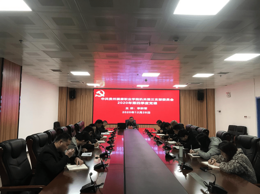 12月28日,学院党委副书记李黔军在行政楼2会议室,为机关第三党支部的同志们上了一堂生动的党课。