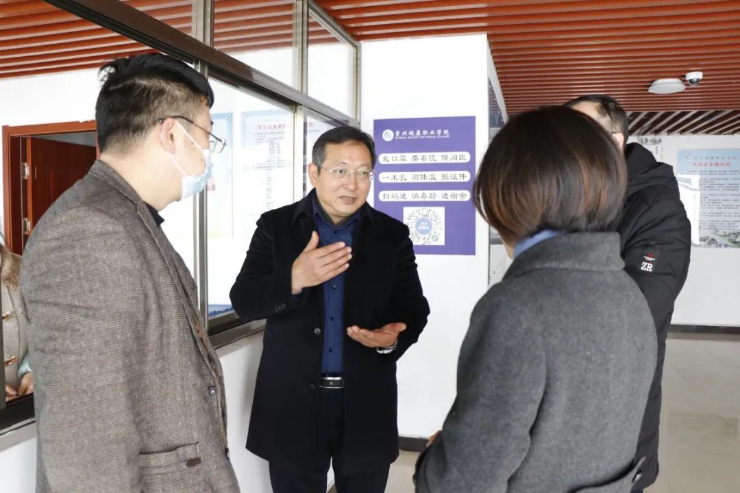 护理系学生返校第一天,院党委副书记李黔军视察学院学生返校工作。党委委员、党政办公室主任王晶韵,护理系、保卫处、后勤处等部门负责人陪同视察。