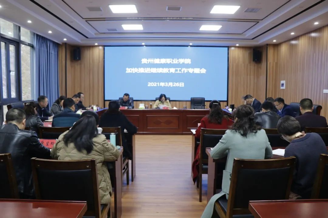 3月26日上午,学院党委书记黄霞主持召开继续教育工作专题会议,总结工作成绩,明确发展思路,部署推进继续教育重要工作。院领导李黔军、唐康、龙宪碧、袁继鸿、田勇、王锡林、张敏、王家琪、王晶韵出席,教务处、规划财务处、后勤处、学生处、护理系、健康管理系、药学系、基础医学部负责人及继续教育部全体工作人员参加会议。