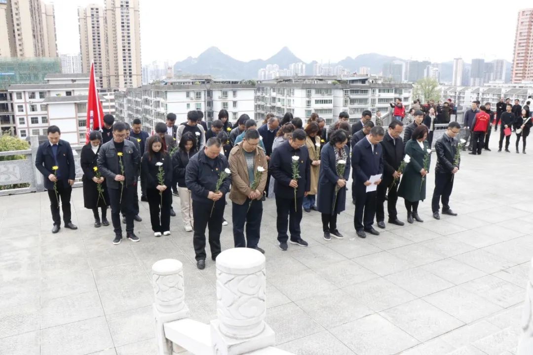 4月1日,细雨霏霏,云天低垂,院党委书记黄霞率班子成员及各支部党员代表40余人来到铜仁市碧江区烈士陵园开展“铭党史·祭先烈”清明扫墓活动,缅怀革命先烈,接受精神洗礼,铭记党史,汲取前行力量。