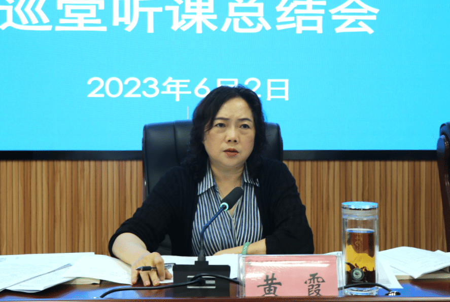 6月2日,我院召开2022—2023学年第二学期领导班子及系部党政负责人巡堂听课总结会。党委书记黄霞主持会议并讲话,党委副书记、院长吴国才及学院领导班子成员出席会议,各系党政负责人,各巡堂听课小组成员、被听课教师等参加会议。