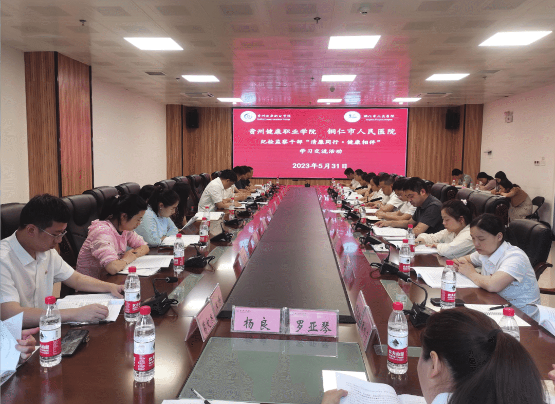 5月31日,我院与铜仁市人民医院纪检监察干部开展“清廉同行·健康相伴”学习交流活动。学院党委委员、纪委书记袁继鸿主持活动并讲话,铜仁市人民医院党委委员、纪委书记何炼出席并作廉政教育报告。