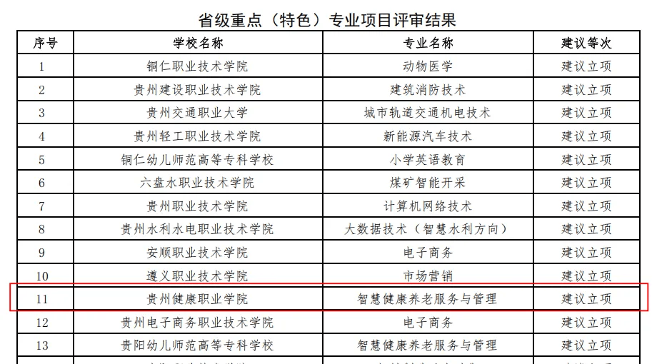 省级重点(特色)专业评审结果公示