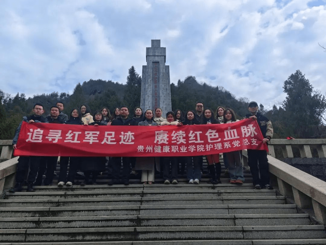 在印江自治县木黄镇,组织党员开展“追寻红军足迹·赓续红色血脉”活动,瞻仰了红二、六军团木黄会师纪念碑,向革命先烈敬献花篮。同时,大家参观会师柏和纪念馆,了解烈士生平。党员们纷纷表示,今后将以更加饱满的热情,投身护理教育和医疗服务工作,推动党建工作与业务发展深度融合,为人民群众的健康福祉不懈奋斗,为大健康事业的高质量发展注入“红色动能”。