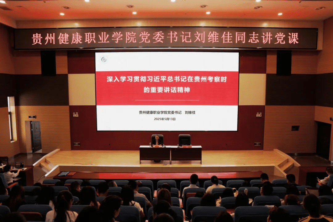 5月13日,pg娱乐党委书记刘维佳在学术报告厅以“深入学习贯彻习近平总书记在贵州考察时的重要讲话精神”为主题进行宣讲。校党委办支部全体党员、全体思政教师和专职辅导员及四系学生代表共300余名师生参加。