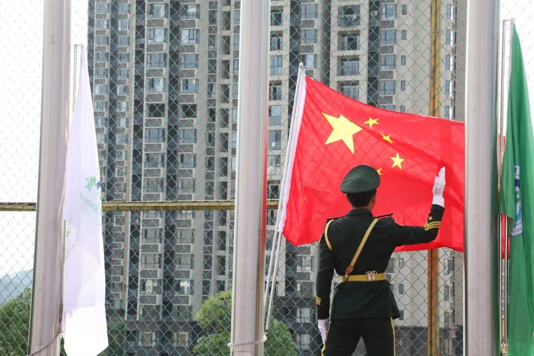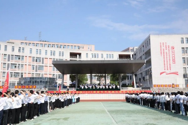 开训大会在庄严的升旗仪式中拉开序幕,全体师生肃立行注目礼,鲜艳的五星红旗冉冉升起,点燃了在场师生的爱国热情与奋斗激情。