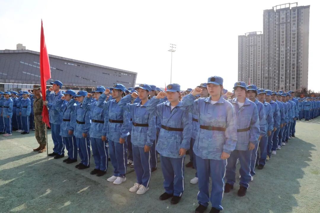 会上,党委副书记、院长吴国才向军训团授旗,师生分别进行了宣誓。新生代表、教师代表、军训教官代表分别发言。