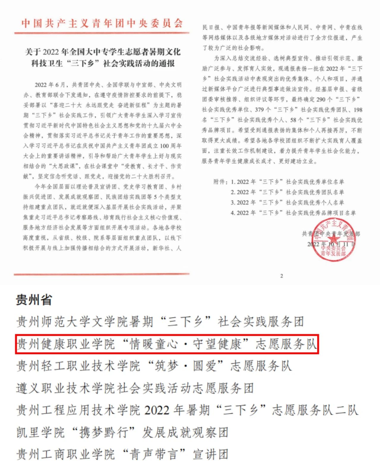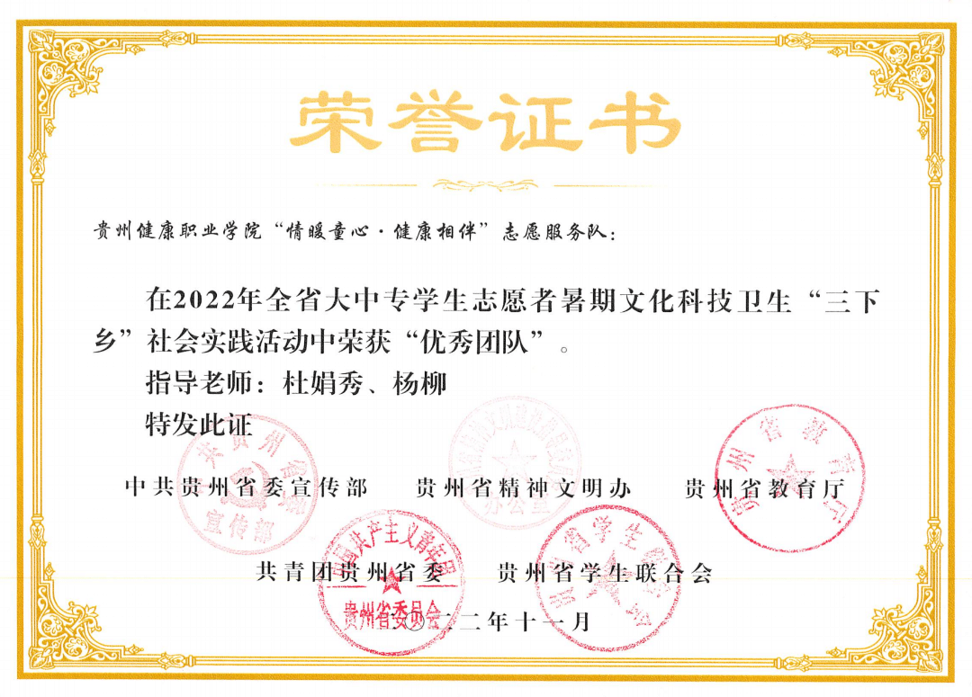 健康管理系将志愿服务作为党建带团建的重要抓手,培养学生感恩意识和奉献精神。积极组织发动广大青年大学生通过暑假期“三下乡”社会实践发挥专业优势服务社会。来自黄大发的寄语。2022年暑假,健康管理系团总支到遵义市播州区与播州区青年志愿者协会开展交流学习,前往该区平正仡佬族乡团结村开展志愿服务活动,活动中志愿者细心地为“七一勋章”“全国劳动模范”“时代楷模”“全国道德模范”称号获得者黄大发及当地群众测量血压、做艾灸和健康科普宣传,深受群众欢迎。活动开展后,“黄爷爷”寄语pg娱乐电子游戏官网入口厚生黔行志愿服务队的同学们,充分肯定了健康管理系学子的志愿服务工作,同时得到微铜仁视频号和中共贵州省委组织部贵州党建云关注。受到团中央的表彰。2022年,健康管理系大学生暑期“三下乡”活动成果显著,多个优秀团队、优秀品牌项目,多名优秀指导教师和优秀学生志愿者获得省、市、院表彰表扬,“情暖童心•守望健康”志愿服务队荣获团中央授予的2022年全国大中专学生志愿者暑期文化科技卫生“三下乡”社会实践优秀团队荣誉称号。