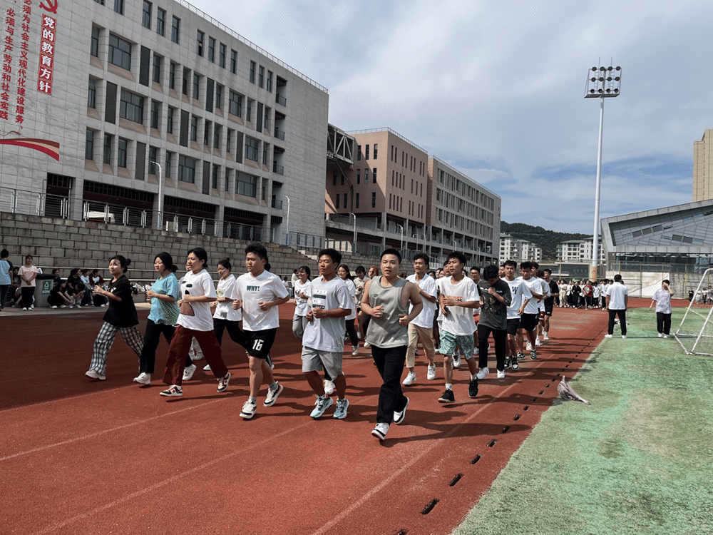 授课结束后,在校4000多名学生在体育老师的带领下,顶着烈日开展了“阳光体育”健康跑活动,现场氛围浓烈,学生热情高涨,在奔跑中享受运动的惬意。接下来,我院将持续激励广大学生积极参与体育锻炼,磨炼学生意志,提高学生终身体育意识和体质健康水平,助力健康校园建设。