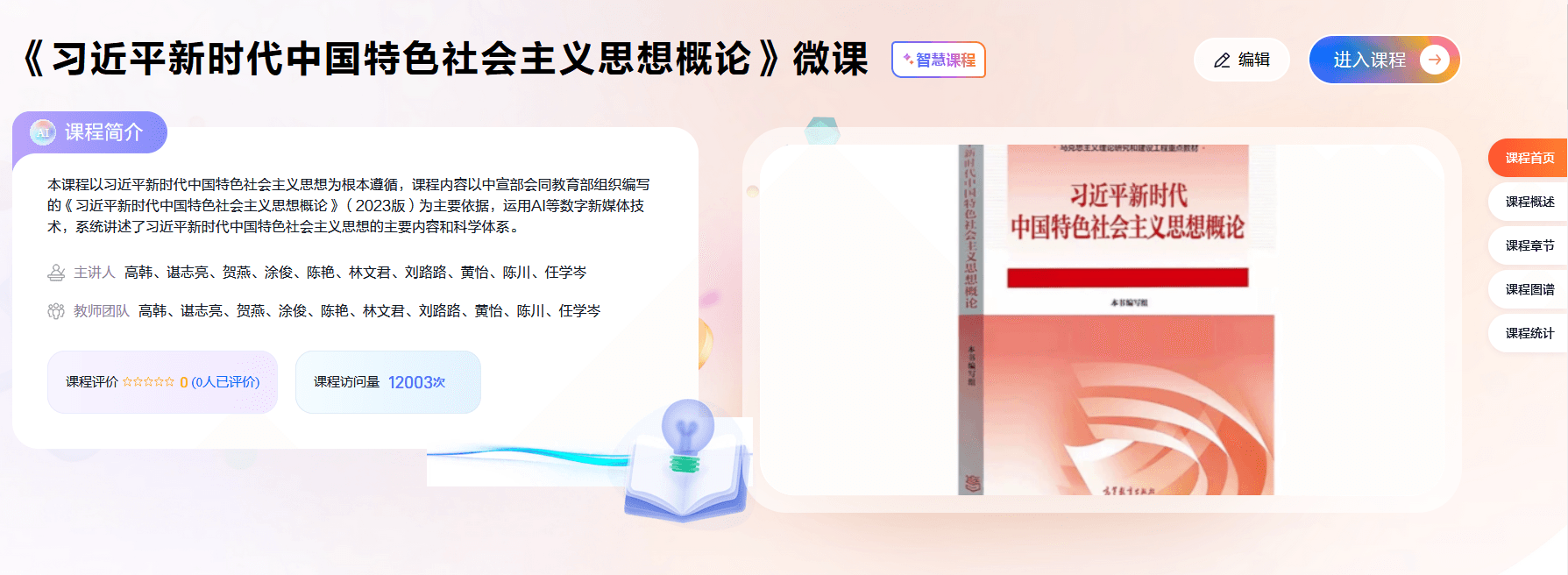 为响应教育部教育数字化战略行动,强化需求牵引,深化融合、创新赋能、应用驱动,积极发展“互联网+教育”,加快推进教育数字转型和智能升级。pg娱乐电子游戏官网入口马克思主义教学部积极探索课程教学的改革创新,以教材为主要依据,运用“知识图谱+学习地图+AI+深度混合式教学”建设了有特色、有创新、有代表性的《习近平新时代中国特色社会主义思想概论》智慧课程。