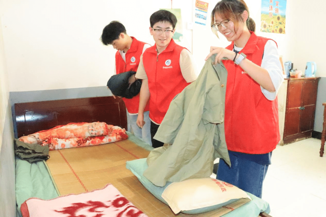 "非常感谢你们,来帮我们量血压、整理房间,还帮助大家做康复训练,真是辛苦孩子们了!"塘头敬老院院民焦奶奶拉着志愿者的手激动的说。走进塘头镇敬老院,志愿者与老人们围坐在一起唠家常,用亲切的话语拉近彼此距离。志愿者们结合自身专业特长,为每位老人仔细测量血压,用通俗的方言解释测量结果,反复叮嘱饮食、用药的注意事项。康复训练环节,志愿者手把手指导老人进行关节活动、肢体拉伸,帮助他们舒缓筋骨。走进院民宿舍,志愿者们细心整理老人们的床铺,将生活用品摆放得井井有条,清扫房间每一个角落,让院民房间焕发出整洁明亮、舒适温馨的新面貌。