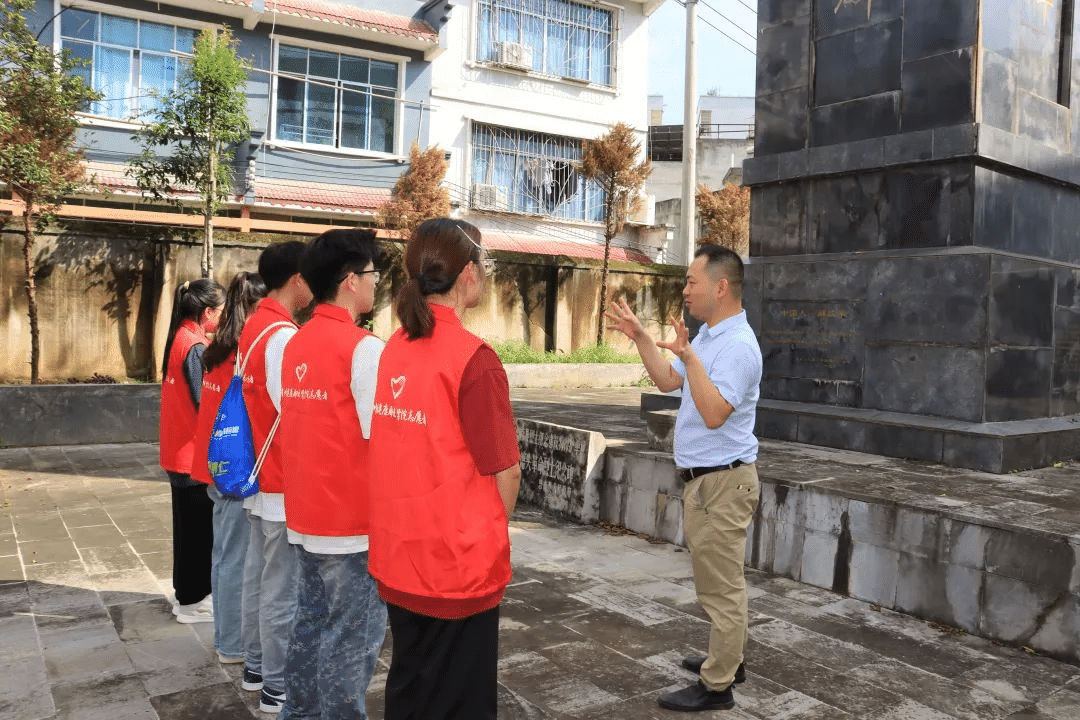 志愿服务团来到塘头镇革命先烈纪念碑,鞠躬默哀,聆听烈士事迹。随后,全体人员依序瞻仰纪念碑,表达了对英烈的敬仰和缅怀之情,继承和发扬革命光荣传统。