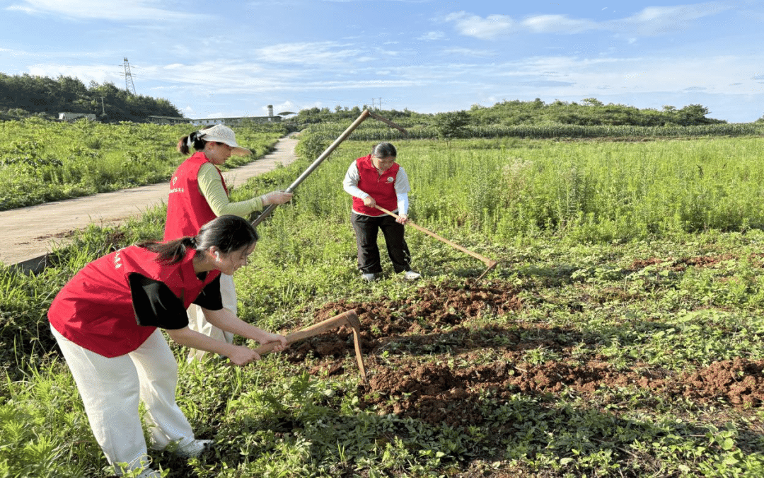实践队开展“汗滴沃土育青苗,白衣耕耘种春风”主题劳动实践活动,将课堂搬到田间地头,旨在厚植青年爱农情怀、锤炼兴农本领。同学们手握锄头躬身劳作,化作晒得发红的脖颈与额头汗珠,让大家深切感悟:脚下沾有多少泥土,心中便沉淀多少真情。