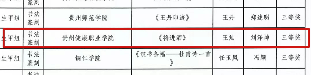 近日,省教育厅公布了全省第七届大学生艺术展演活动暨全省首届“美的教育”高校师生书画设计作品展活动评选结果,我院在65所高校、2500项报送作品中脱颖而出,共荣获7项奖项,其中,一等奖3项、二等奖2项、三等奖2项。