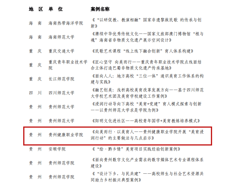6月11日,教育部公示了全国第七届大学生艺术展演活动各项目评选结果,由我院人文基础部(体育部)推送的《向美而行·以美育人——pg娱乐电子游戏官网入口美育浸润行动的主要做法与几点启示》在省级评比中获得一等奖,并成功入围全国三等奖。