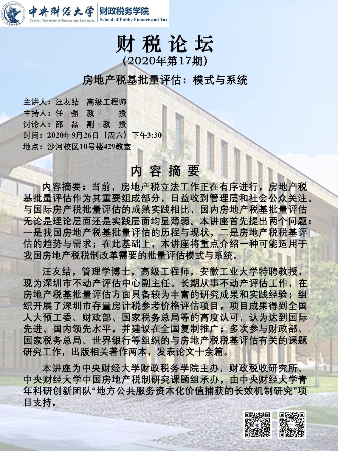 【财税论坛】17期:房地产税基批量评估:模式与系统