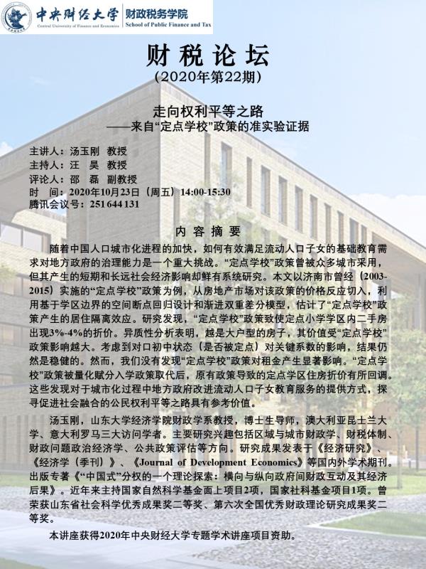 财税学院召开“走向权利平等之路——来自‘定点学校’政策的准实验证据”财税论坛