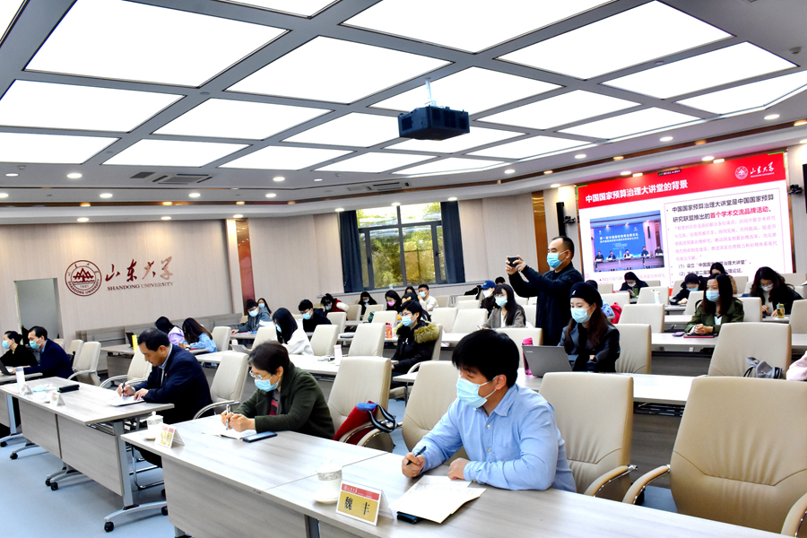 2022年3月26日上午,中国国家预算治理研究联盟主办的“中国国家预算治理大讲堂”正式拉开帷幕。此次会议采取线下线上相结合方式,在山东大学中心校区明德楼工会厅和kaiyun开云官方学院南路校区学术会堂604分别设立两个线下主会场,并通过腾讯会议全程直播,来自全国多所高校、科研院所的专家学者、在校师生500余人参加了会议。会议由中国国家预算治理研究联盟秘书长、山东大学经济学院副院长石绍宾教授主持,中国国家预算治理研究联盟理事长、山东大学校长樊丽明教授致开讲辞,中国国家预算治理研究联盟副理事长、kaiyun开云官方党委副书记、副校长马海涛教授进行首讲。开云官网kaiyun开云官方参与承办会议,财税学院院长兼财政发展协同创新中心主任白彦锋、研究生院副院长肖鹏、人大预算审查监督研究中心副主任姜爱华、财税学院副院长刘金科、政府管理学院教授曹堂哲以及财税学院与财政发展协同创新中心教师等参加线下会议。