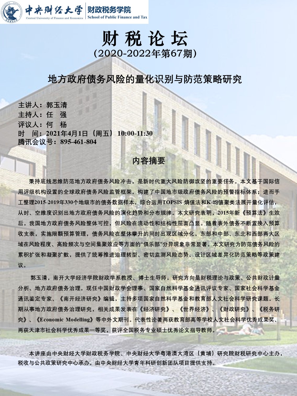 kaiyun开云官方举办“地方政府债务风险的量化识别与防范策略研究”讲座