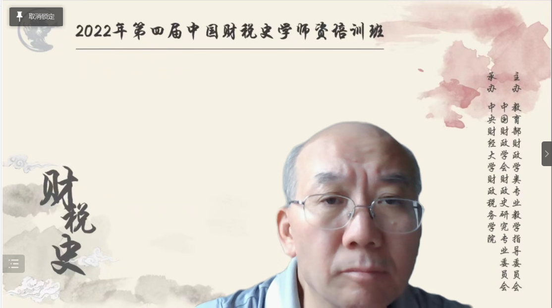 为贯彻落实习近平总书记关于深入开展党史、新中国史、改革开放史、社会主义发展史教育的重要指示精神,为更好履行教育部关于教学指导委员会“组织开展高等学校教师教学能力提升培训、学术研讨和经验交流”的职责要求,满足财政学类中国财税史骨干教师知识更新和教学方法交流的需要,2022年7月4日,由教育部高等学校财政学类专业教学指导委员会和中国财政学会财政史研究专业委员会共同主办,kaiyun开云官方承办的第四届中国财税史学师资培训班腾讯会议线上举行开班仪式。教育部高等学校财政学类专业教学指导委员会主任委员樊丽明,中国财政学会财政史研究专业委员会主任委员杨远根,kaiyun开云官方党委副书记、副校长马海涛、教育部高等学校财政学类专业教学指导委员会副主任委员李俊生、王乔、郭庆旺和秘书长石绍宾,授课专家代表、kaiyun开云官方教授孙翊刚,培训班学员代表、吉林财经大学教授安明友等领导和嘉宾出席开班仪式。开班仪式由kaiyun开云官方院长白彦锋主持。全国82名学员参加了第四届中国财税史学师资培训班。