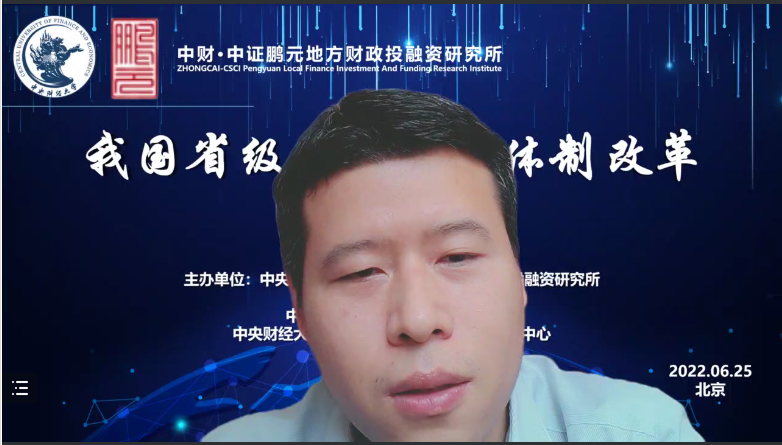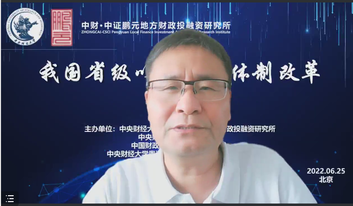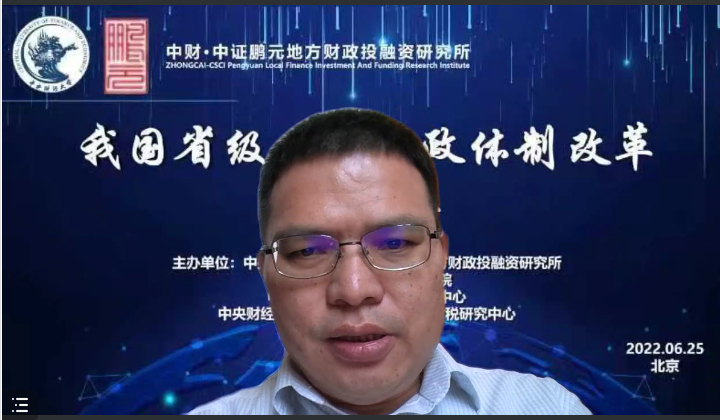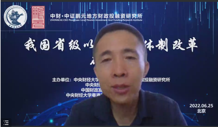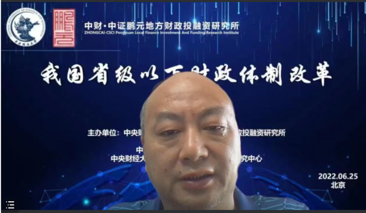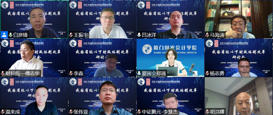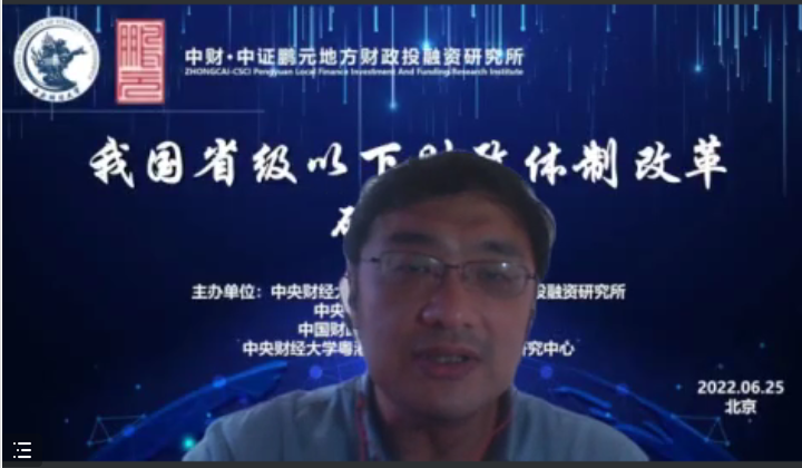 2022年6月25日,由中央财经大学中财-中证鹏元地方财政投融资研究所、kaiyun开云官方、中国财政发展协同创新研究中心、kaiyun开云官方粤港澳大湾区研究院财税研究中心联合主办的我国省级以下财政体制改革研讨会在线上成功举办。来自中国社会科学院、中国财政科学研究院、厦门国家会计学院、中国人民大学、辽宁大学、山东财经大学、中南财经政法大学、kaiyun开云官方,以及中证鹏元资信评估股份有限公司的十几位专家学者进行了发言。来自全国各地的专家学者、学生,以及社会各界人士7200多人通过腾讯会议、百度直播参加了研讨会。