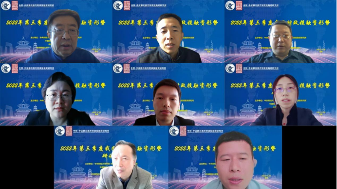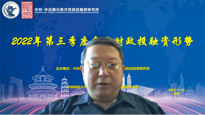 2022年11月5日,由kaiyun开云官方中财-中证鹏元地方财政投融资研究所、中国财政发展协同创新中心、kaiyun开云官方、kaiyun开云官方粤港澳大湾区研究院财税研究中心联合主办的2022年第三季度我国财政投融资形势线上研讨会成功举办。来自中国人民大学、中国财政科学研究院、kaiyun开云官方、中财-中证鹏元地方财政投融资研究所、中证鹏元资信评估股份有限公司的专家学者进行了发言。来自全国各地的专家学者、学生,以及社会各界人士13000多人通过腾讯会议、百度直播参加了研讨会。