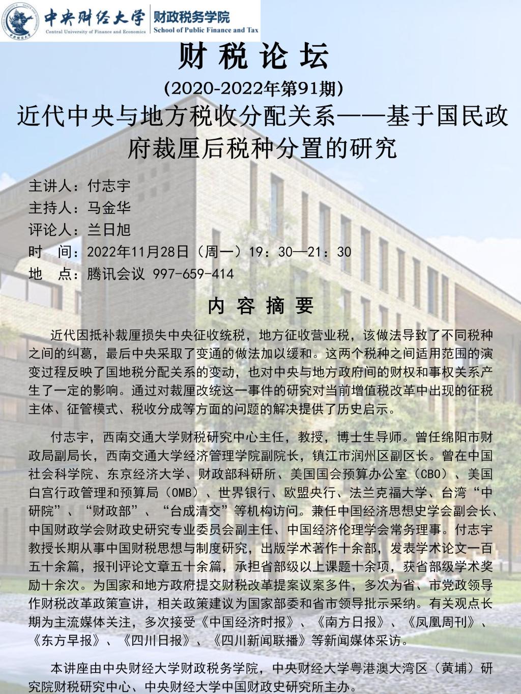 【财税论坛】近代中央与地方税收分配关系——基于国民政府裁厘后税种分置的研究