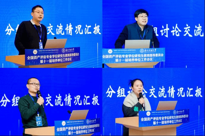 讨论组组长王佳教授、文豪教授、葛锐教授和杨青教授分别总结并汇报了讨论组的情况。与会代表就专硕招生、师资队伍建设与师资培训、教材建设、教学研讨、产教融合培养、理论研究、学科归属等资产评估专硕教育的实际问题进行了充分交流,并提出了切实可行的建议。