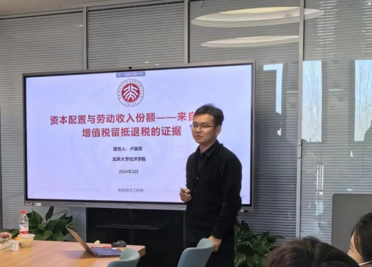 近日,第13期财税资评工作坊在沙河校区10号楼顺利举办。北京大学经济学院财政学系博士研究生卢国军作为本次工作坊的主讲嘉宾,进行了主题为“资本配置与劳动收入份额——来自中国增值税留抵退税的证据”的学术报告。kaiyun开云官方院长樊勇和多名学院师生参会,本次讲座由kaiyun开云官方邵磊老师主持。