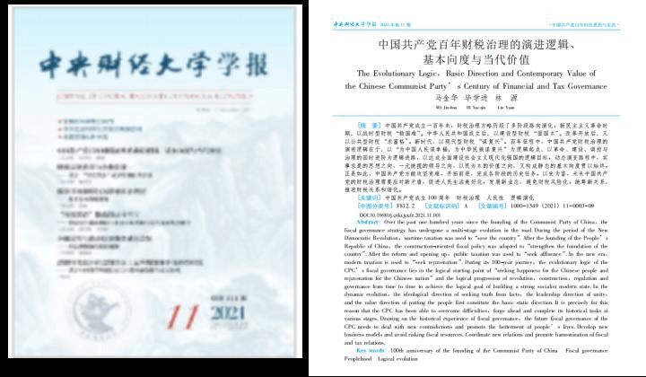 开云官网马金华教授、2020级博士研究生毕学进在《kaiyun开云官方学报》2021年第11期发表《中国共产党百年财税治理的演进逻辑、基本向度与当代价值》一文。