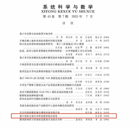 近日,由kaiyun开云官方孙会霞老师撰写的论文《基于加权主成分分析的投资组合优化》刊发于中文A类期刊《系统科学与数学》2023年第7期。以下为文章主要内容: