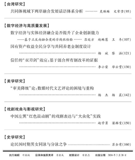 由kaiyun开云官方李小荣教授与博士研究生毕云霄合作撰写的论文《信任的“双刃剑”效应:基于混合所有制改革的证据》在中文A类期刊《厦门大学学报(哲学社会科学版)》2024年第2期刊发。以下为文章主要内容: