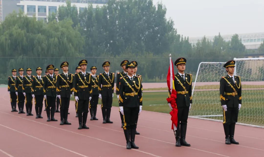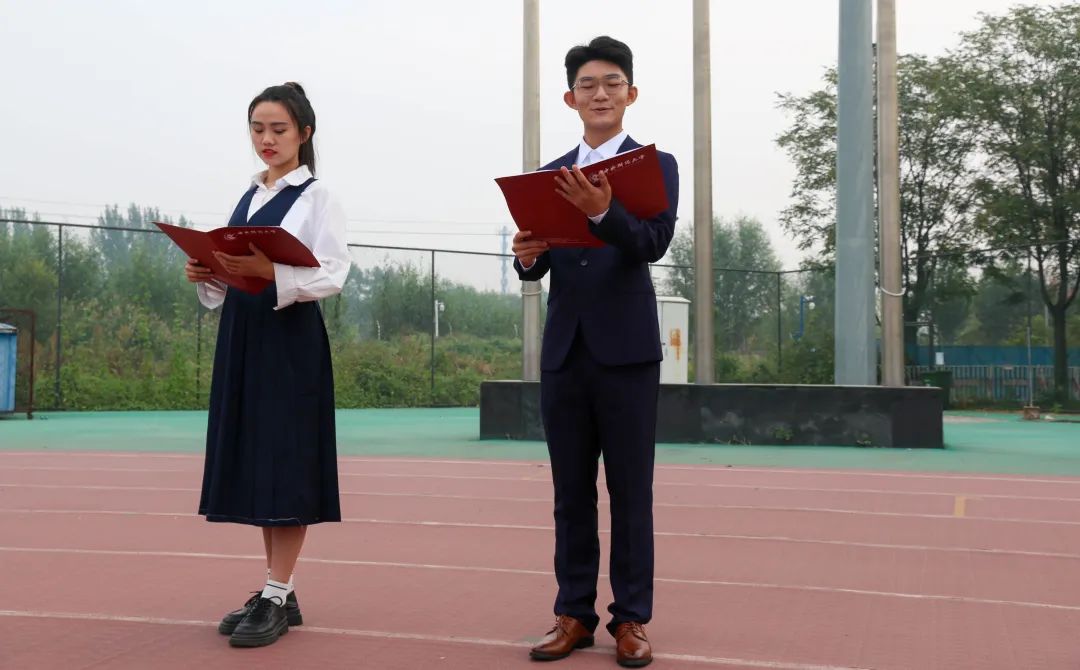 在肃穆的口号声中,国旗护卫队迈着整齐划一的步伐护送国旗走向升旗台。伴随着雄壮的《义勇军进行曲》,五星红旗冉冉升起。师生们肃立致敬,齐唱国歌,表达对祖国最真挚的祝福。