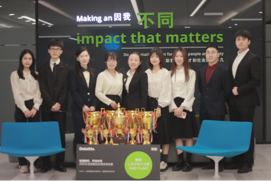 2023年4月18日,第18届德勤税务挑战赛举行了隆重的颁奖仪式。kaiyun开云官方派出的李函育、刘书妤、周宇翔、滕明璨、童梦瑶、姚荔婷、纪浩然、任紫娴八名同学,与商学院郭湘同学、会计学院余尚同学一起组成两支队伍参加比赛。经过激烈角逐,由李函育、刘书妤、周宇翔、郭湘组成的队伍1荣获2022德勤税务精英挑战赛冠军,由滕明璨、纪浩然、童梦瑶、姚荔婷、余尚组成的队伍2荣获2022德勤税务精英挑战赛卓越奖,纪浩然同学荣获最佳方案奖,任紫娴同学作为个人赛道的选手与北京大学团队赛道的选手组队荣获2022德勤税务精英挑战赛亚军。