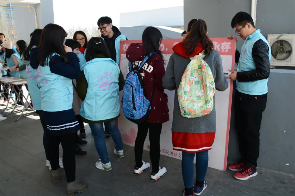 3月8日中午,kaiyun开云官方团总支学生会青协的同学们在沙河校区东、西区食堂门口举行了现场捐衣活动,团总支学生会秘书处、组织部的同学协助举办了此次活动。身着蓝色志愿者马甲的青协同学们早早摆放好了桌椅、易拉宝和签字版,等待捐衣同学的到来。随着下课铃声的响起,向食堂走来的同学渐渐多了起来,青协的志愿者们开始向经过的同学发放宣传单,热情介绍此次捐衣活动。很多同学前来咨询活动的详细信息,青协的同学们都一一给予了耐心的解答。经过咨询后,许多同学立刻赶回寝室整理准备捐赠的衣物,随后将它们带到了捐赠现场。参与捐赠的同学和老师纷纷在签名板上留下自己的签名,作为自己爱心的见证。3月9日下午,捐衣活动继续在东区、西区同时进行。在青协志愿者们的宣传下,有更多的同学将自己闲置的衣物捐赠出来。仅仅一个下午,空地上就堆满了衣物。当天晚上,财税学院团总支学生会的同学们共同将在西区收集的衣物搬到东区。尽管衣物沉重,但所有参与活动的同学们都不觉疲累。3月10日、11日,活动持续进行,不断有同学前往捐衣点捐出衣服,用自己的实际行动表达对此次活动的支持。