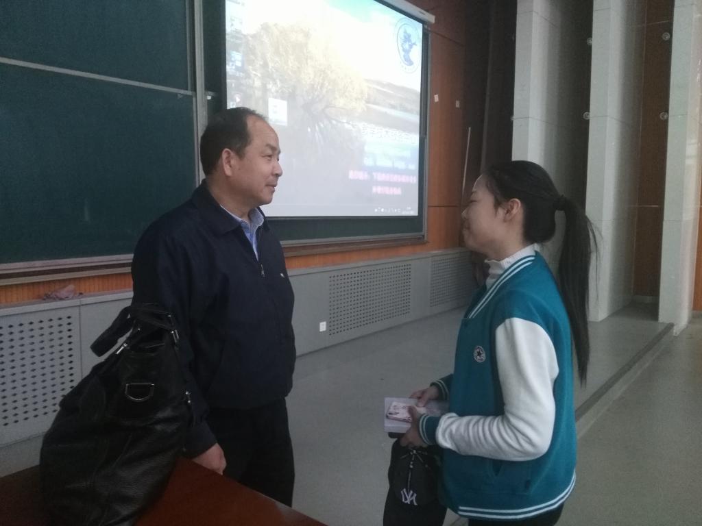 其次,关于修养智慧,刘教授指出,所谓“智慧”,智,即是每日有知进,慧,即是对心进行清扫。针对在校生,刘校友特别指出培养校园智慧。大学教育的目标就是人的社会化问题,而本科阶段教育的重点应当是素质教育和通识教育,在于独立人格的培养和科学思维的养成。刘校友还向同学们提出了自己的建议,要和智慧聊天,勤读书、爱学习。真正“读万卷书,行万里路”,既要读有字的书,也要读无字的书,更要优化读书的结构,丰富体系。