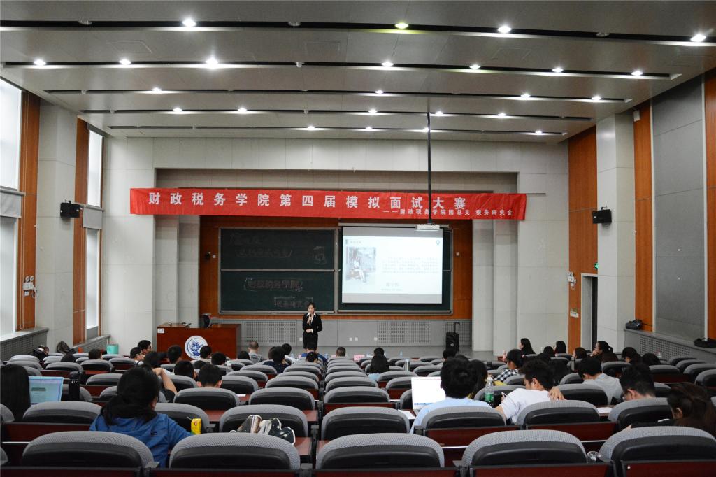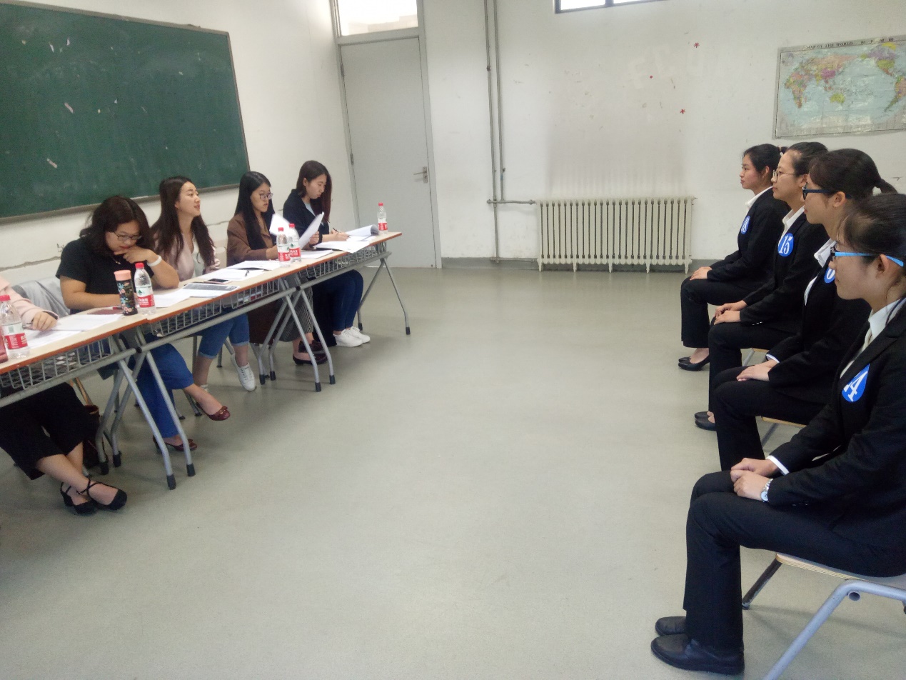 5月3日下午,决赛于学院楼4号楼107教室举行。比赛采取一对多的面试形式,中国康辉旅行社集团有限责任公司副总裁王群祥先生、桔子水晶酒店集团高级经理李思佳女士、信达地产股份有限公司人力资源部副总经理丁辉先生、中财大资产公司人力资源部经理崔本根先生和kaiyun开云官方党委副书记宋立岩老师担任本次比赛评委,学生工作办公室于来老师、团总支书记蒋绮雯老师及财税学院学生们也参加了本次活动。