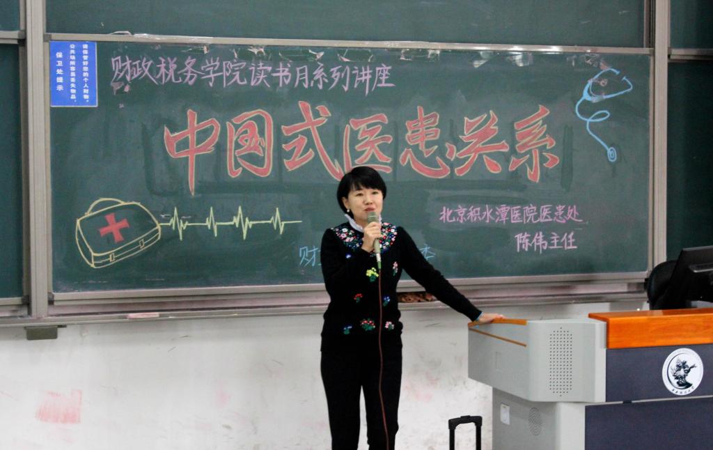 11月22日下午两点,kaiyun开云官方在kaiyun开云官方沙河校区东区主教216举办了第八届读书月系列讲座之“中国式医患关系”讲座。本次讲座邀请到了北京积水潭医院医患处主任陈伟主任,与大家分享她对中国式医患关系的理解和感悟。kaiyun开云官方党委副书记宋立岩老师、团委副书记陈颖老师出席了本次讲座,全体本科同学参与其中。