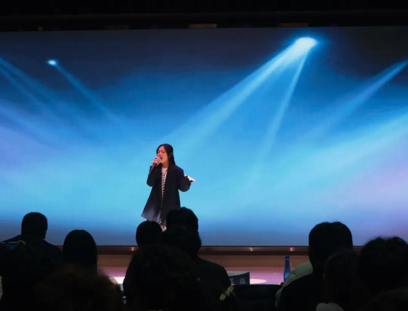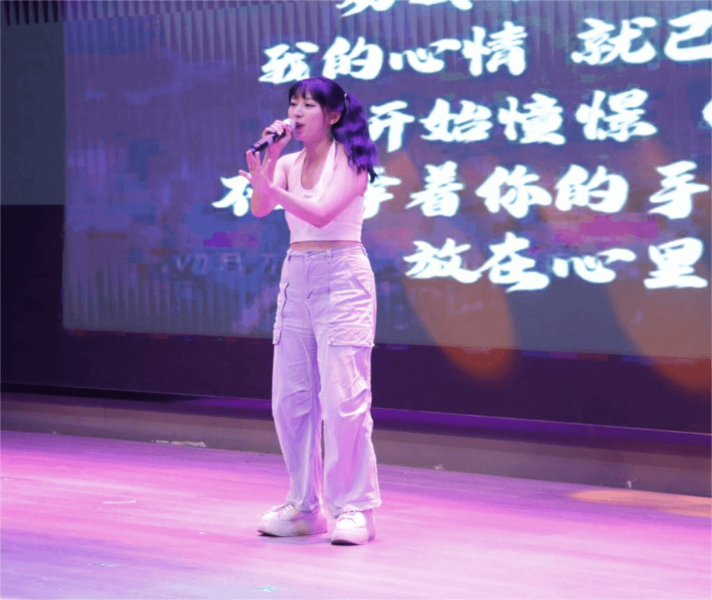 邵磊老师和孙景冉老师带来吉他弹唱,吉他的琴弦被轻轻拨动,仿佛一叶小舟静静漂浮在湖面上。旋律轻盈地飘荡,似微风拂过细腻的耳畔,温柔地搅动心湖的涟漪,带领我们远离尘嚣、回归内心的宁静。