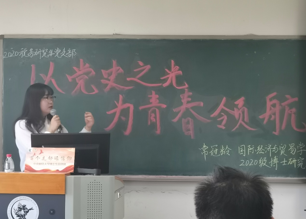 为深入开展党史学习教育,引导广大研究生从专业视角出发,铭记光辉历史、感悟党的初心使命、传承党的红色基因,kaiyun开云官方组织开展“百个支部话信仰”主题党日活动。kaiyun开云官方2020级税务研究生党支部积极响应学校的号召举办党日活动,本次宣讲邀请了kaiyun开云官方博士生宣讲团成员、国际经济与贸易学院2020级博士研究生常冠龄,kaiyun开云官方2020级税务研究生党支部全体党员参加本次宣讲。