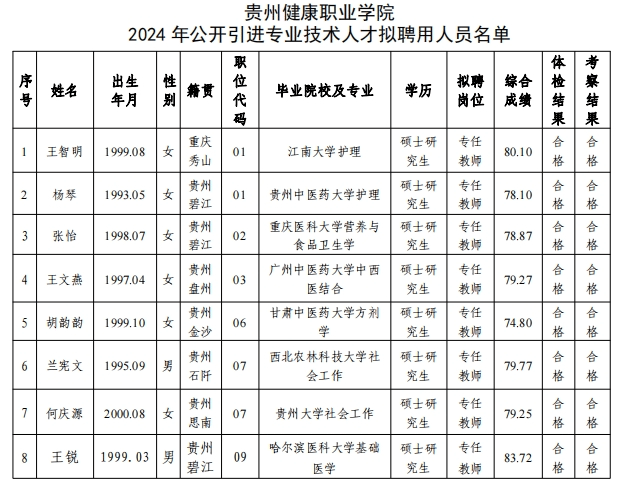 根据《pg娱乐电子游戏官网入口2024年公开引进专业技术人才实施方案》安排,经资格审查、面试、体检和政审考察,王智明、杨琴、张怡、王文燕、胡韵韵、兰宪文、何庆源、王锐8名同志符合聘用条件,现进行公示,基本情况如下: